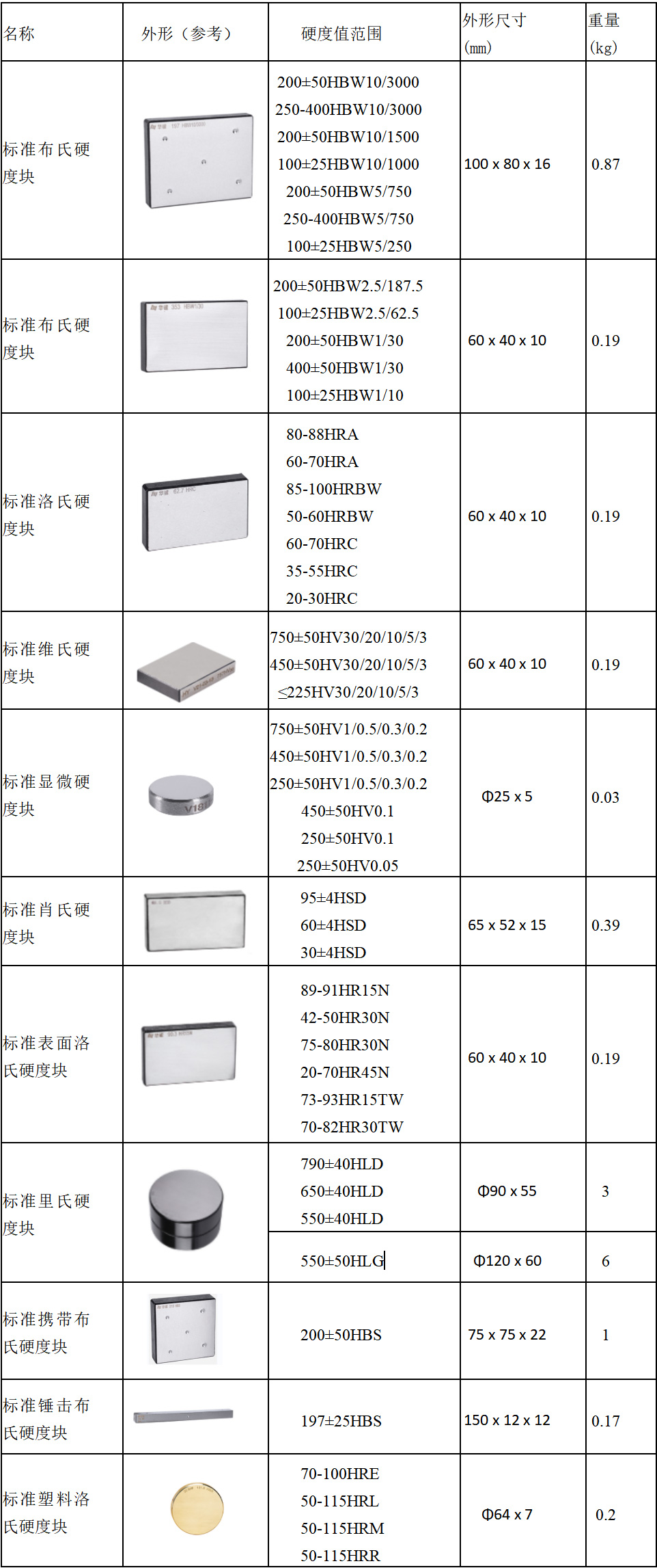 技術(shù)參數(shù)(部分硬度塊規(guī)格參數(shù)):